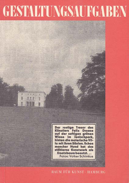 Droese, Felix: Der Sicherheitsschrank. (Fortsetzung) Alle Fragen – Gestaltungsaufgaben. Januar 1989. Auflage 1000 Exemplare. Hmbg. Raum für Kunst. 1989. 24 x 17 cm. 32 unpaginierte S. Illustrierter OKarton. Einbandkanten mit minimalen Bereibungen. Sonst sehr gutes Exemplar. Katalog zur Ausstellung Hamburg 1989 durchgehend mit ganzseitigen Abbildungen veersehen.