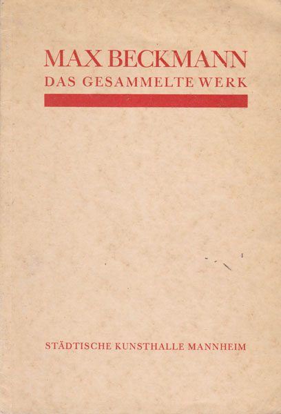 Beckmann, Max: Das Gesammelte Werk. Gemälde/ Graphik/ Handzeichnungen aus den Jahren 1905 – 1927. Erste Auflage. Mannheim. Städtische Kunsthalle Mannheim. 1928. 26 x 18 cm. 32 S. OKarton. Einband etwas nachgedunkelt und mit kleinen Randbereibungen, papierbedingt insgesamt etwas gebräunt. Sonst gutes Exemplar. Früher Katalog zur Ausstellung Mac Beckmanns in der Städtischen Kunsthalle Mannheim vom 19. Februar bis 1. April 1928. Mit 19 Abbildungen und 272 chronologisch verzeichneten Werken. Selten!
